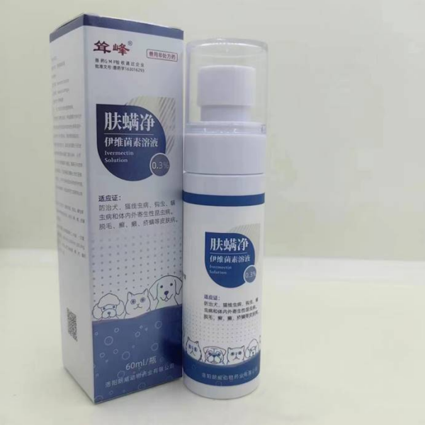 3)驅(qū)蟲威霸噴劑家族產(chǎn)品:膚滿凈(伊維菌素溶液)、滴爽(阿維菌素透皮溶液)